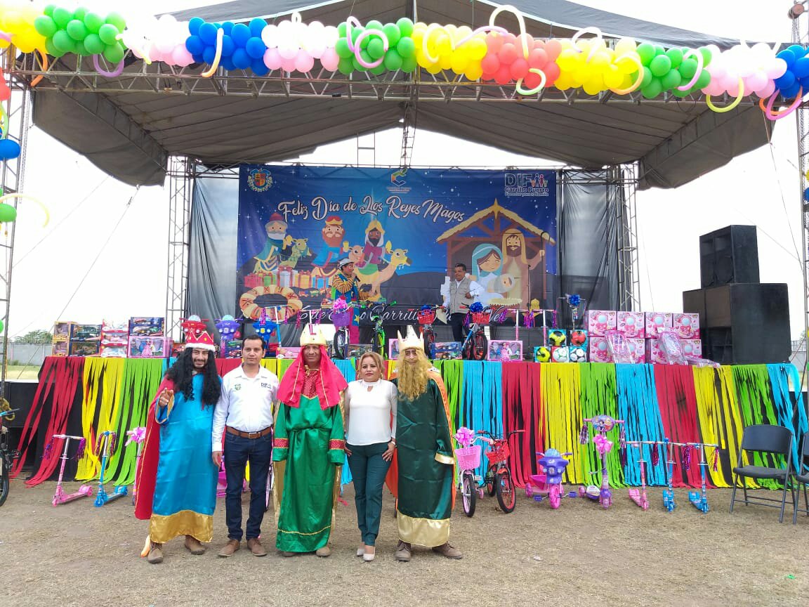 Música, Espectáculos Infantiles, baile, los Regalos para todos los niños y una deliciosa rosca, formaron parte de los festejos del día de Reyes que se llevó a cabo por estas autoridades del Desarrollo Integral de la Familia que preside la Mtra. Esmeralda Carrillo Tinoco, la edil de este municipio al ser entrevistado comento: «Estoy muy agradecido por la respuesta que tuvimos, porque este era el propósito, que esto se convirtiera en una verbena Familiar para disfrutar de esta fecha tan importante para todos nuestros niños y niñas, hemos venido en Familia para disfrutar con ustedes un gran Amor en armonía, pueblo y Gobierno, porque estamos comprometidos por integrar a las familias de una forma positiva y así lo seguirémos haciendo durante toda nuestra administración»