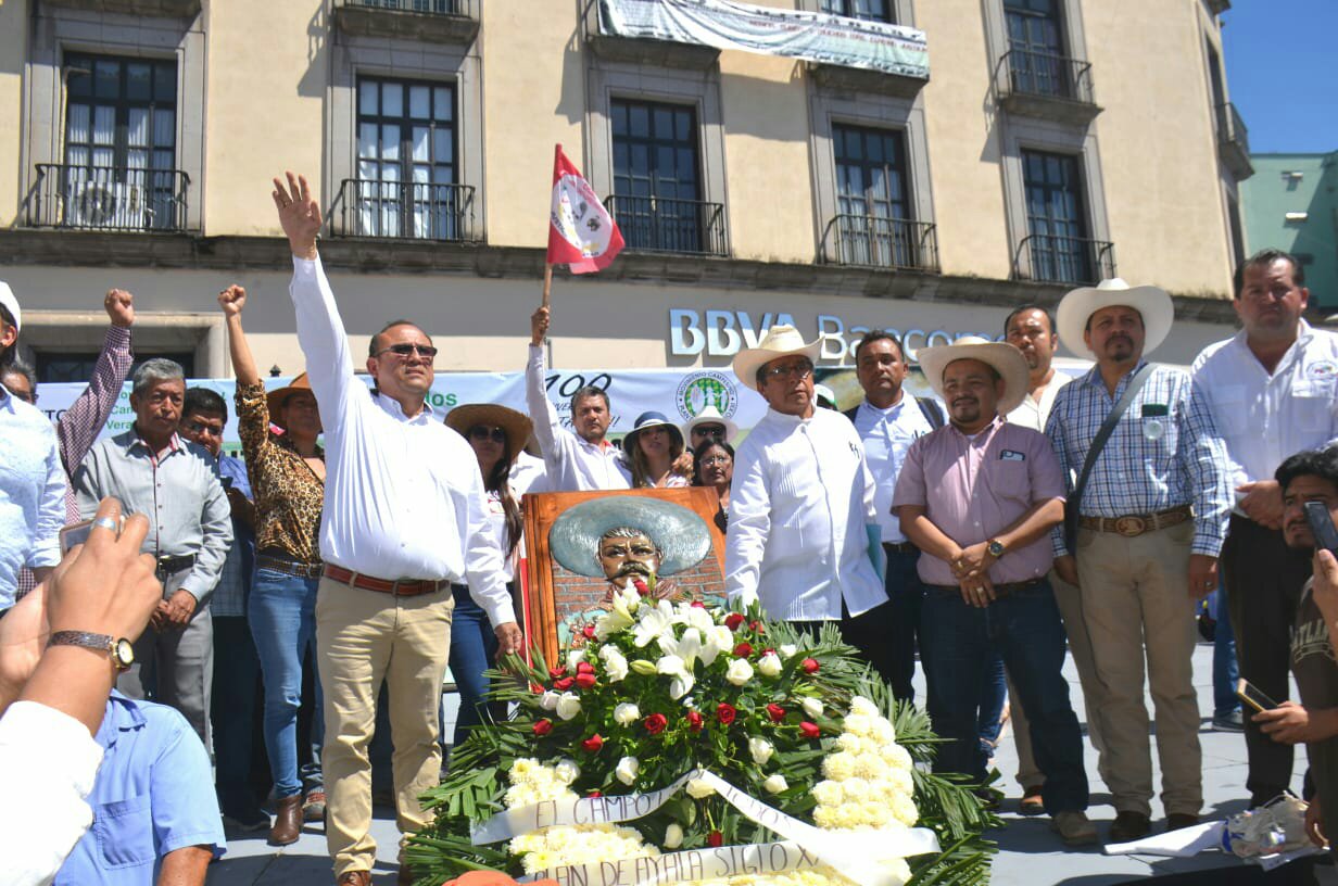 Campesinos del estado de Veracruz, marcharon por las calles pricipales de Xalaoa en homenaje luctuoso del General Emiliano Zapata.