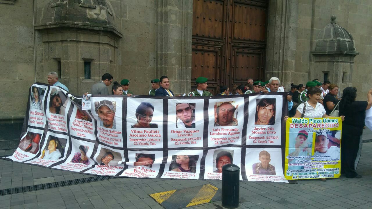 «Las 40 familias que aproximadamente somos estamos invitados a entrar, pero hemos acordado quedarnos fuera y protestar mientras se realice el evento, no estamos de acuerdo en el trabajo que se realiza y queremos fijar nuestra oposición a esta reunión», comenta Guillermo Guitierrez, padre de una chica desaparecida en Tamaulipas.