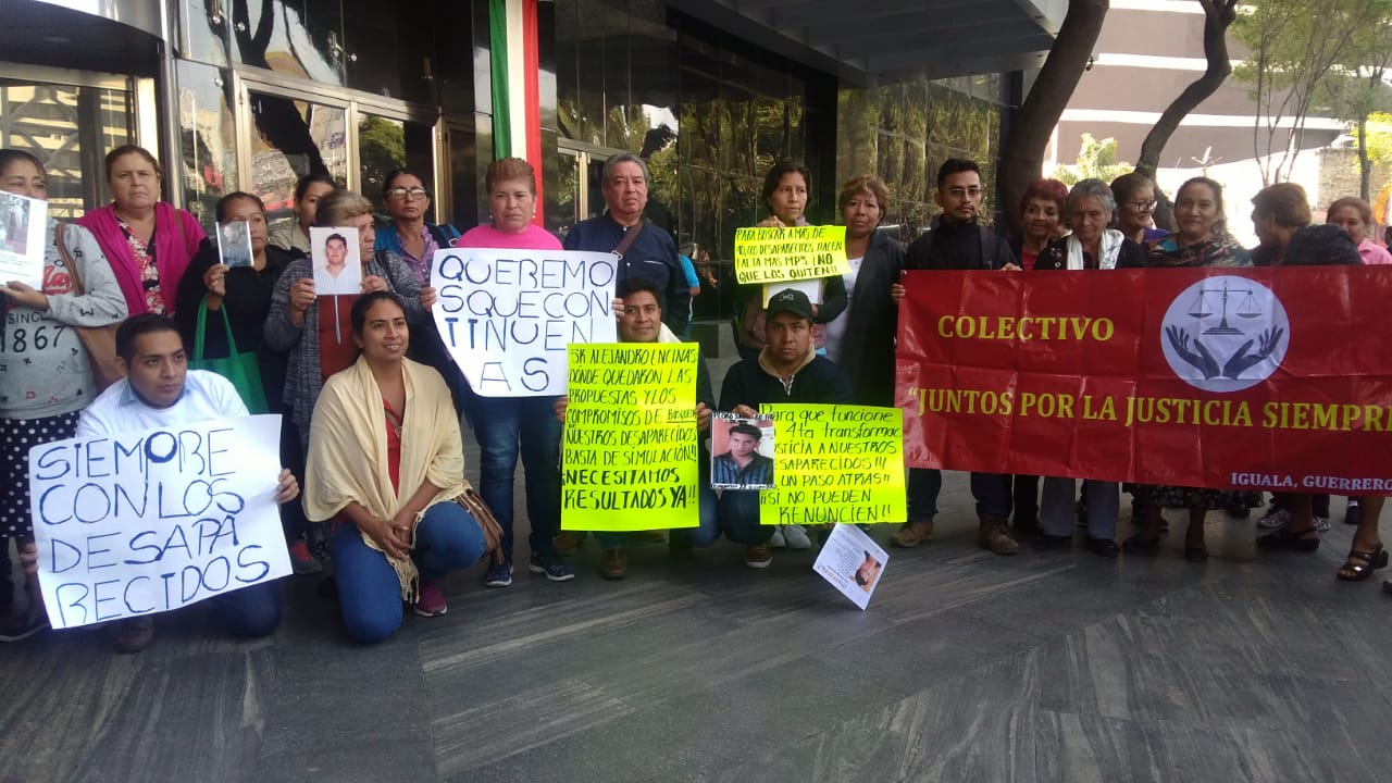 Desde muy temprano familiares de personas desaparecidas se congregaron fuera de esta dependencia para exigir una reunión con el Fiscal Abel Galván Gallardo y pedir les expliqué el porque de la suspensión de búsqueda para dar con sus hijas e hijos desaparecidos en el estado de Guerrero.