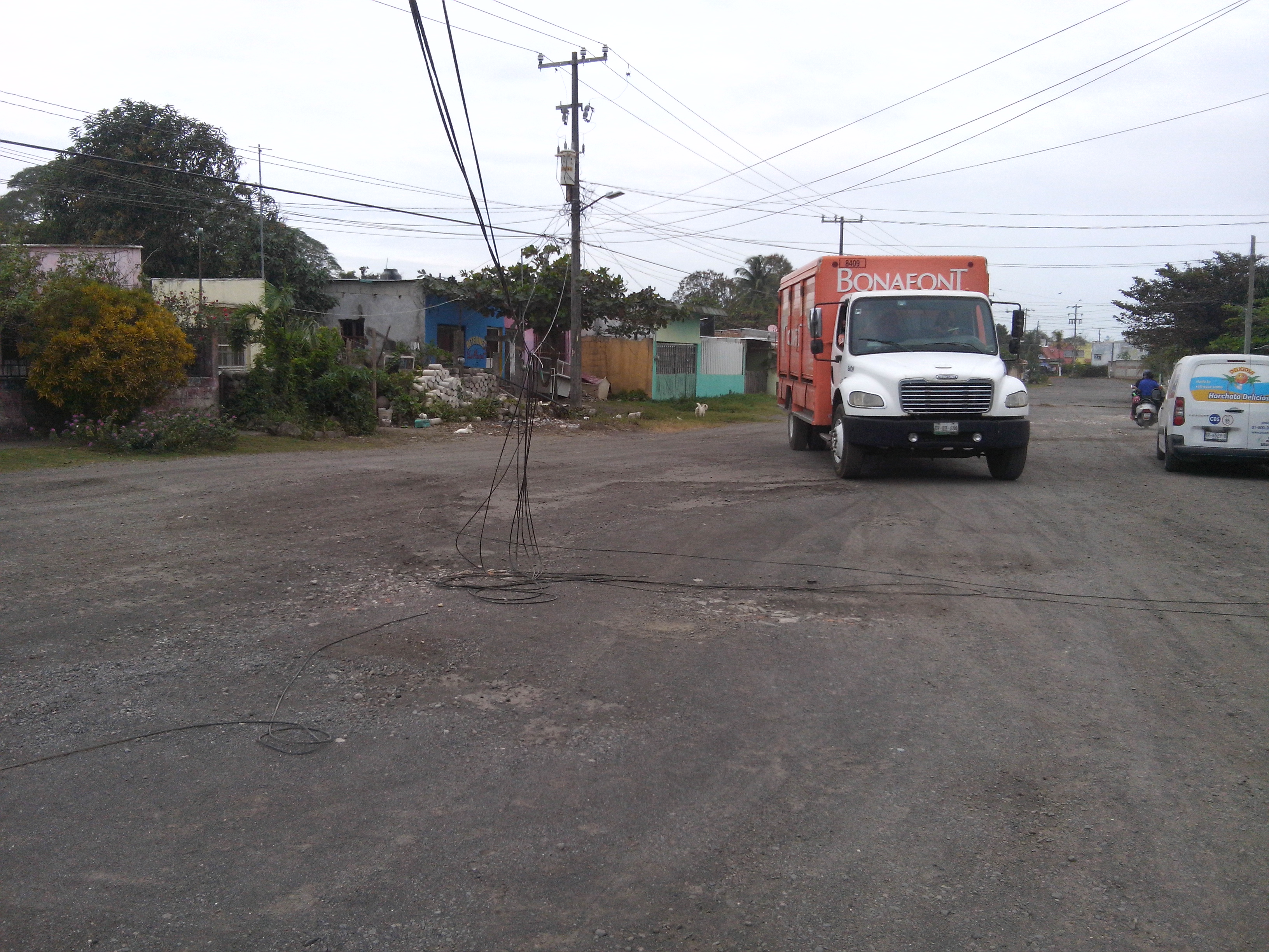 Vecinoa de la Col. 20 de Noviembre nos informan que desde hace dos semanas los cables, posiblemente de teléfono, se encuentran colgados a media calle.