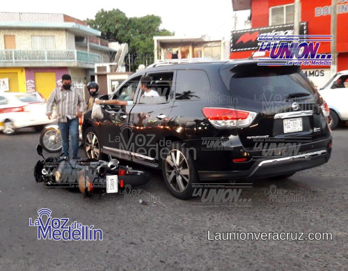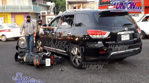Se trató de una camioneta de la marca Nissan tipo Pathfinder color negra, la cual intentó incorporarse a la avenida, pero no hizo el alto total y no se percató de la presencia del motociclista, quien se le impactó en un costado.