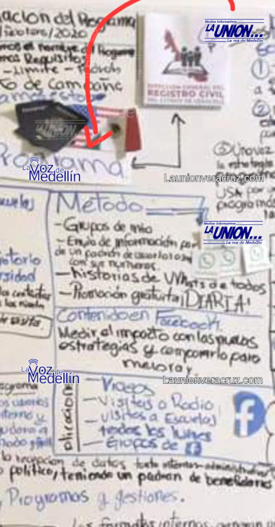 Sin embargo, en otra placa, se puede apreciar que detrás, en un pizarrón hay una leyenda que reza; “necesitamos esto…” y una flecha hacia el logo del Registro Civil.
