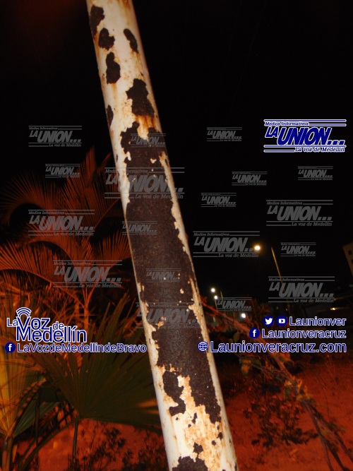 Por lo que hacen un llamado al ayuntamiento de Medellín a que atiendan el problema y le dé mantenimiento a los demás postes que se encuentran corroídos por el oxido y que reparen las lamparas que no encienden, ya que parte del parque lineal se encuentra en las penumbras.