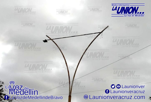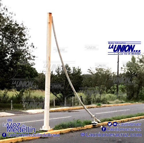 Este miércoles, reportaron la caída de luminarias en la cabecera municipal de Medellín de Bravo. Fue en la carretera Medellín-Jamapa (Paseo Jamapa), donde un poste de alumbrado público se doblo.