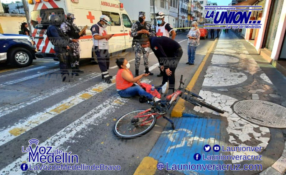 La tarde de este miércoles, una mujer que circulaba en su bicicleta por el primer cuadro de la ciudad, fue atropellada por la conductora de un automóvil particular y requirió la ayuda de las corporaciones de rescate.