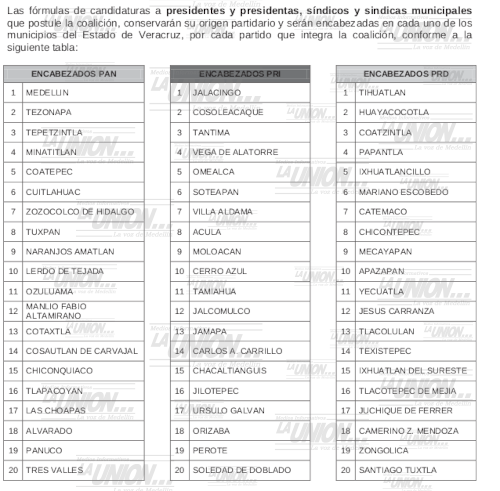 Se Publica Alianza PRI-PAN-PRD en Veracruz, «Veracruz Va».