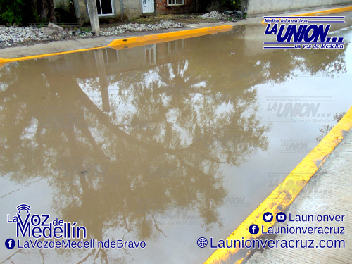 Vecinos de la Col. Lomas de San Gabriel, denunciaron que las obras que realizó el ayuntamiento de Medellín de Bravo, no sirven. Y es que este martes llovió unos minutos y se inundaron las calles de dicha colonia.
