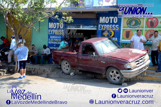 El conductor de una camioneta particular que se desplazaba por calles de la zona norte de la ciudad de Veracruz, terminó por incrustarla en la fachada de un taller mecánico, donde afortunadamente no lesionó a nadie de gravedad.