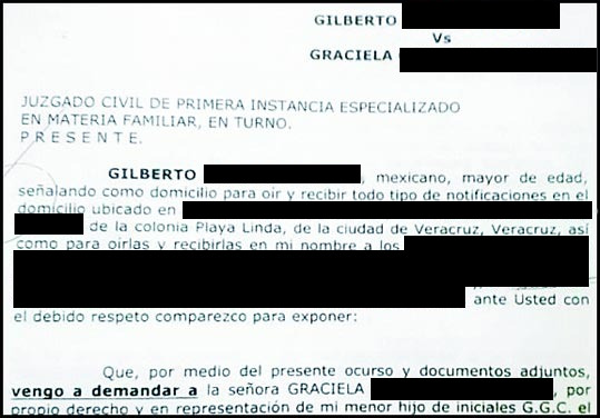 “El Juez declaró la custodia del menor a favor de mi ex esposa Graciela (N) y se fijó una pensión alimenticia de más de 30 mil pesos mensuales, sin embargo, desde 2015 la señora me ha prohibido la convivencia y comunicación con mi hijo”.