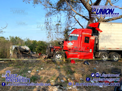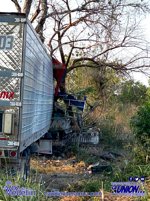 El lamentable hecho tuvo lugar a orilas de la carretera estatal La Bocana-Actopan a la altura de la localidad de El Aguaje, donde el operador de la pesada unidad se desplazaba en aparente exceso de velocidad.