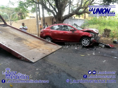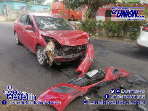 Al lugar de los hechos llegaron paramédicos de Protección Civil de Medellín para brindar los primeros auxilios a Karla C. R., de 40 años de edad, que conducía el vehículo Yaris rojo y quien resultó con una lesión en un brazo debido al fuerte impacto.