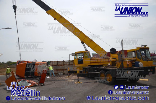 Personal de la propia empresa transportista, llego momentos más tarde para devolver a su posición original tanto la cabina del tráiler, como su carga con el apoyo de una grúa y así poder retirarlos del lugar.