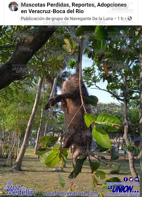 La policía del IPAX, Felicitas Salto, constató y denunció que una tlacuache había sido asesinada y colgada en una palmera del parque Zamora en el municipio de Veracruz.