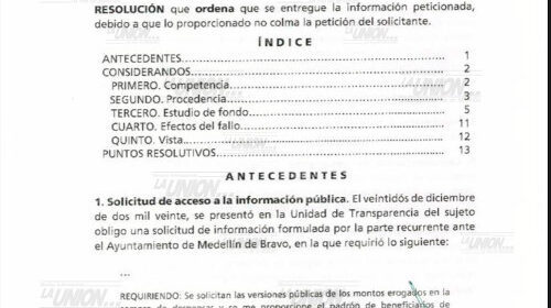 El Instituto Veracruzano de Acceso a la Información (IVAI) solicitó al Ayuntamiento de Medellín de Bravo, responder la solicitud de un ciudadano, quien pidió conocer a detalle el gastos por compra de despensas y los beneficiarios de las mismas durante la actual administración.
