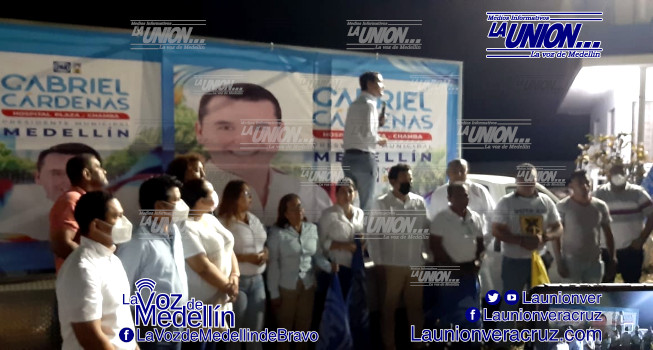 Aproximadamente a las 0:30 hrs. de este martes, Gabriel Cárdenas Guizar llegó al evento del inició de su campaña donde va como candidato a la Presidencia Municipal de Medellín de Bravo por la alianza PRI-PAN-PRD.