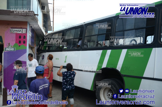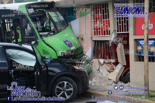 Tanto el autobús como la camioneta de la marca Kia tipo Sorento color negra, salieron proyectadas contra el costado de una vivienda en la esquina, en cuya planta baja tiene una pequeña tienda de abarrotes.