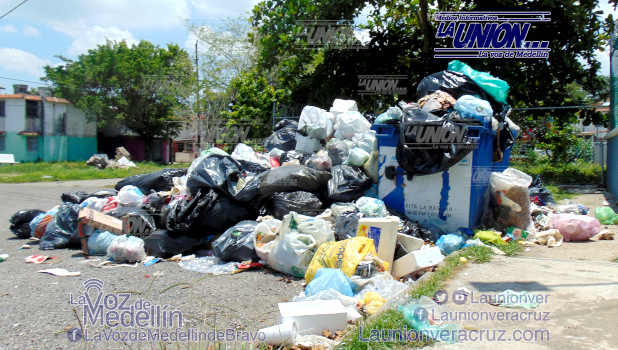 El problema de la basura continúa en varias colonias de Medellín de Bravo donde no han pasado los camiones recolectores de la basura desde hace más de 15 días, por lo que algunos ciudadanos las trasladan de sus colonias a los puntos céntricos la basura o de plano deciden quemarla.