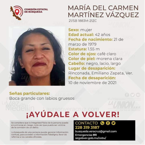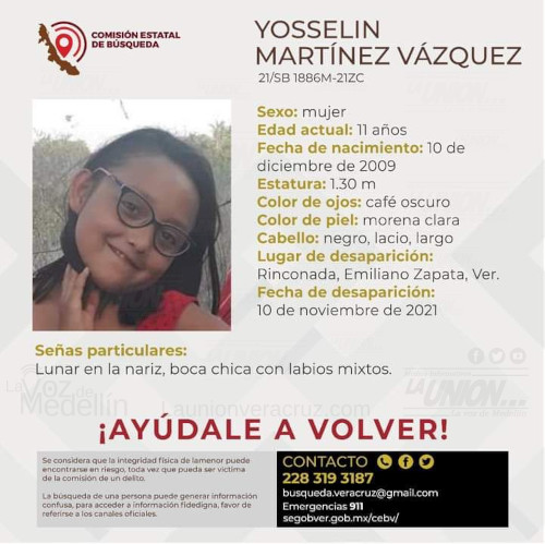 La Comisión Estatal de Búsquedas de Personas en Veracruz, emitió cuatro fichas de alerta Amber para cuatro mujeres integrantes de una familia que desaparecieron el pasado 10 de noviembre en la localidad de Rinconada.