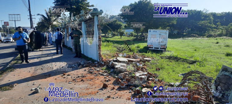 Fue así que este último ya no pudo frenar y perdió el control del volante, por lo cual se fuese su costado derecho, derribó la barda perimetral del cuartel y terminó dentro del mismo, mientras la otra camioneta terminó por volcar.
