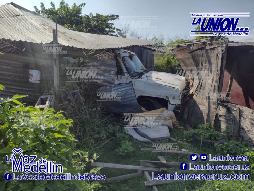 Por fortuna alcanzó a liberar la barra de contención metálica pero se fue de largo hacia un terreno donde se encuentran construidas unas pequeñas casas de lámina y madera, de las cuales se llevó por completo una por delante y dañó otra.