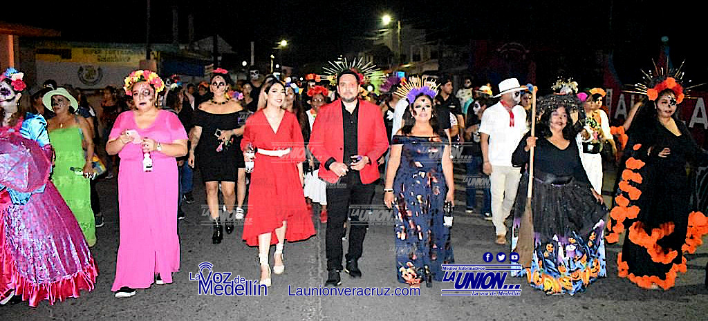 Acompañado de decenas de ciudadanos e integrantes de su gabinete, todos maquillados y caracterizados con vistosos y coloridos vestuarios, el presidente municipal encabezó el contingente de catrines y catrinas que partió de la comunidad El Tejar hasta llegar a la cabecera municipal, en donde desde el pasado lunes se desarrolla con gran éxito el Festival Cultural de Todos los Santos.