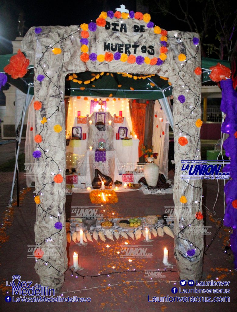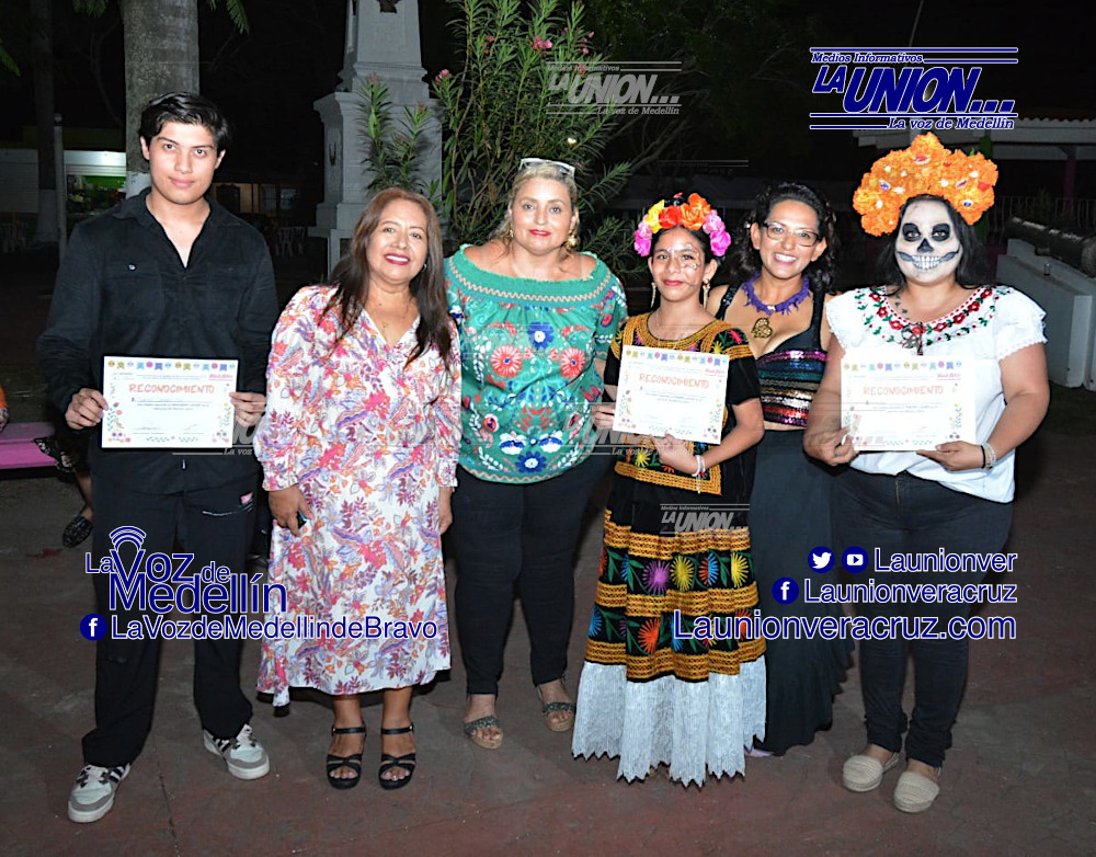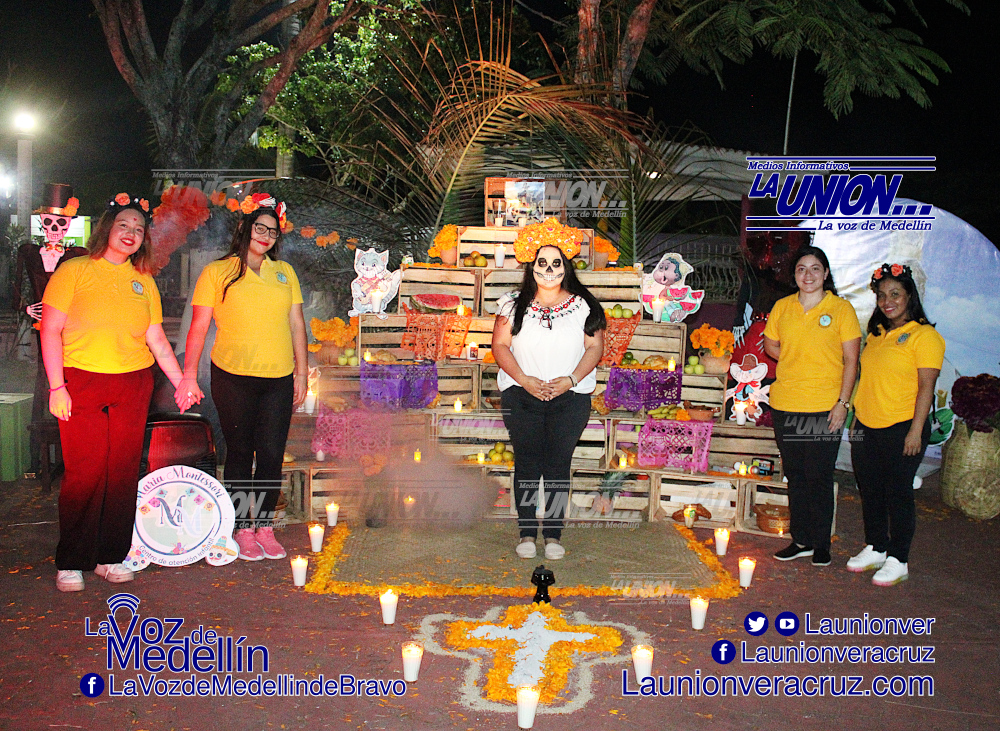 La sindica Concepción Cruz Santos; Bertha Isleño Andrade, presidenta del DIF municipal; Arcelia Lara, directora de Cultura; y Sara Martínez, directora del DIF; presentaron los escenarios instalados en el Parque Nicolás Bravo, en la cabecera municipal. Para después dar paso al concurso de altares.