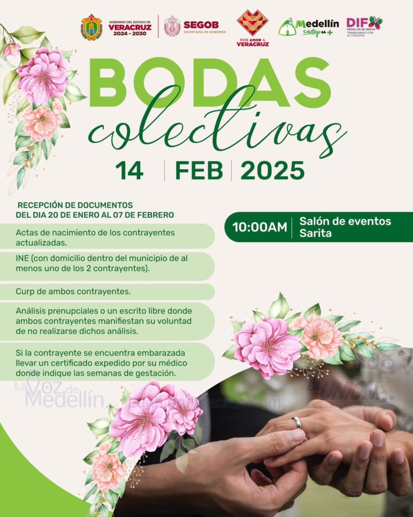Mencionó que dicho apoyo va dirigido únicamente para parejas que vivan dentro del municipio de Medellín y que ya pueden acudir al registro civil a entregar documentación, mismos que serán recibidos hasta el 7 de febrero.