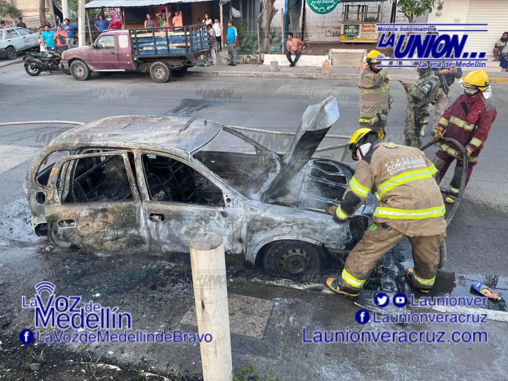 Cabe señalar que el fuego alcanzó a dañar otro auto de la marca Chevrolet tipo Spark color blanco que estaba estacionado detrás, pues le quemó parte del frente pero lograron moverlo antes que también fuera consumido.