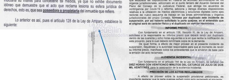 Un Juez Federal negó la suspensión provisional solicitada por invasores del predio Arroyo de Caña, en Puente Moreno municipio de Medellín de Bravo, en contra de la orden de lanzamiento (desalojo), pues no pudieron acreditar que sean poseedores o propietarios del predio.