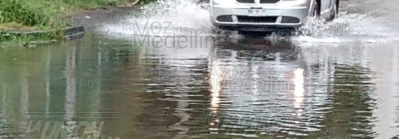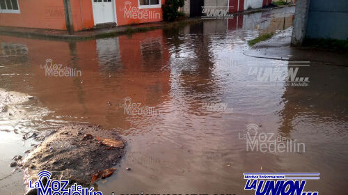 Lluvia deja laguna frente a escuela Miguel Hidalgo, en El Tejar.